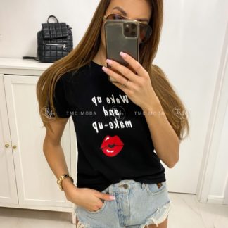 T-SHIRT WAKE UP AND MAKE-UP CZARNY