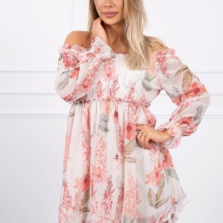 Sukienka z odkrytymi ramionami z motywem kwiatowym ecru