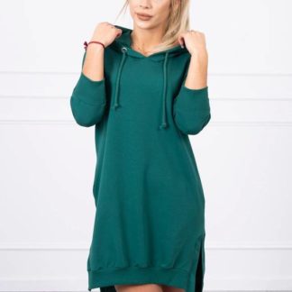 Sukienka z kapturem i dłuższym tyłem butelkowa zieleń